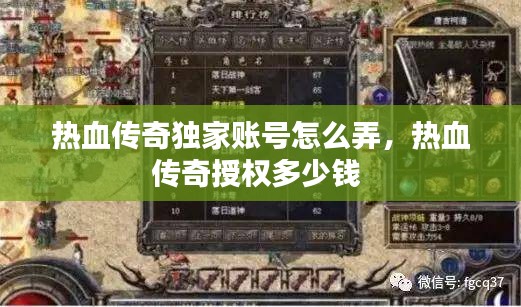 热血传奇独家账号怎么弄,热血传奇授权多少钱