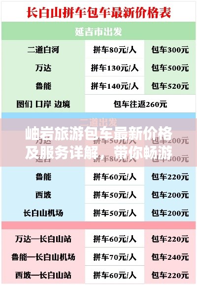 岫岩,以其得天独厚的自然风光和丰富的旅游资源,吸引了众多游客前来探访,对于前往岫岩旅游的游客来说,了解当地的交通情况尤为重要,旅游包车服务作为便捷、舒适的出行方式,备受游客青睐,本文将为您介绍岫岩旅游包车价格表最新的...