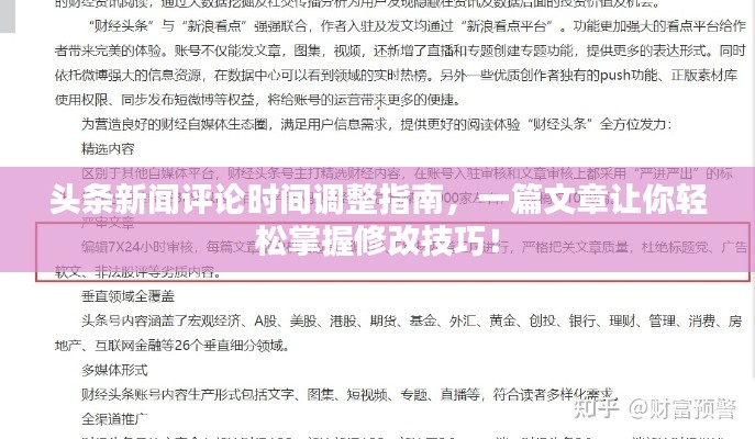 随着互联网的普及和社交媒体的兴起,新闻评论已成为人们表达观点、交流意见的重要渠道,头条新闻作为一款热门的新闻应用,吸引了大量用户参与评论,有时,由于各种原因,我们可能想要修改已发表的评论时间,头条新闻怎么改评论时间呢?本文将为你提供详细的操作指南。