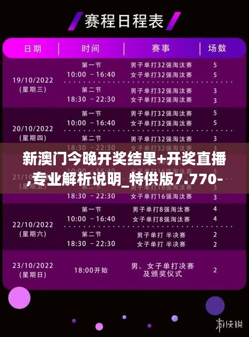 新澳门今晚的开奖结果无疑将成为许多人关注的焦点。而我们通过提供特供版7.770-2的预测、开奖直播以及专业的解析说明,希望能够为广大彩民带来一个激动人心而又充满智慧的夜晚。让我们共同期待,新澳门今晚的开奖结果,不仅将揭示幸运的数字,还将为我们带来无尽的讨论和灵感。