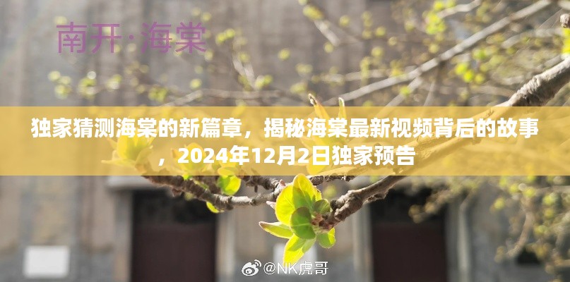 摘要:本文将为你独家猜测海棠的新篇章,带你了解海棠最新视频背后的故事。我们将为你提前揭秘,让你不会错过任何精彩细节。2024年12月2日,我们将为你带来独家预告,让你提前感受到海棠新篇章的魅力。不容错过的精彩内容,敬请期待。