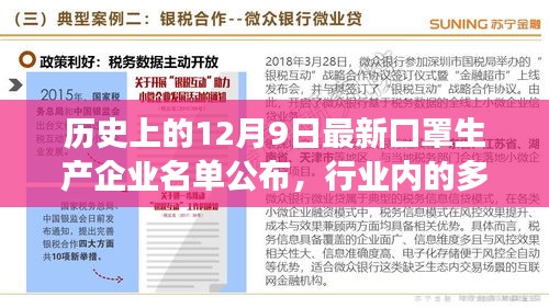 摘要:在最新公布的口罩生产企业名单中,我们看到了历史性的时刻。这一天,即12月9日,新的口罩生产企业在行业内引起了广泛关注。这份名单反映了行业的最新动态和趋势,引发了行业内多维度解读与思考。人们关注这些企业的产能、技...